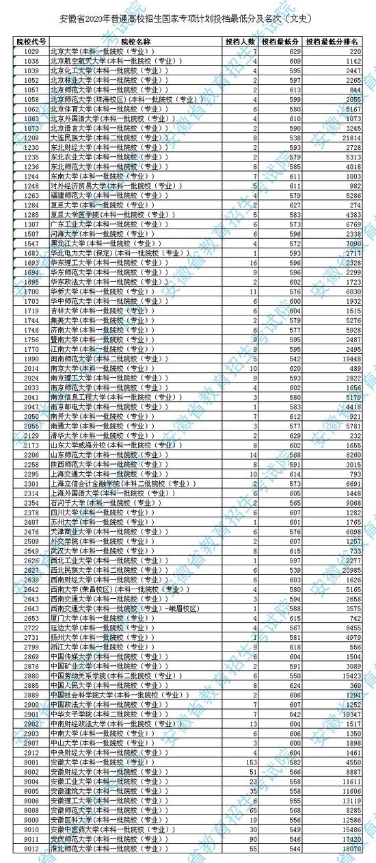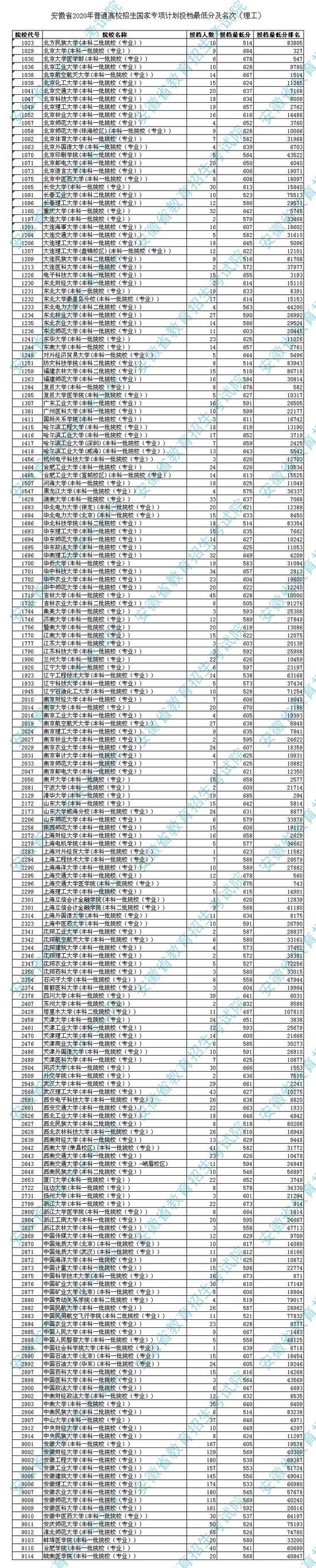 8月12日,安徽省教育招生考试院公布安徽省2020年普通高校招生国家专项计划投档分数及名次。
